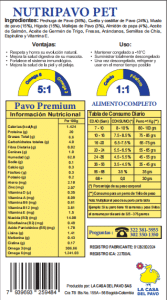 Cuello de Pavo (15%), Hígado de Pavo (15%), Costillar de Pavo (6%),